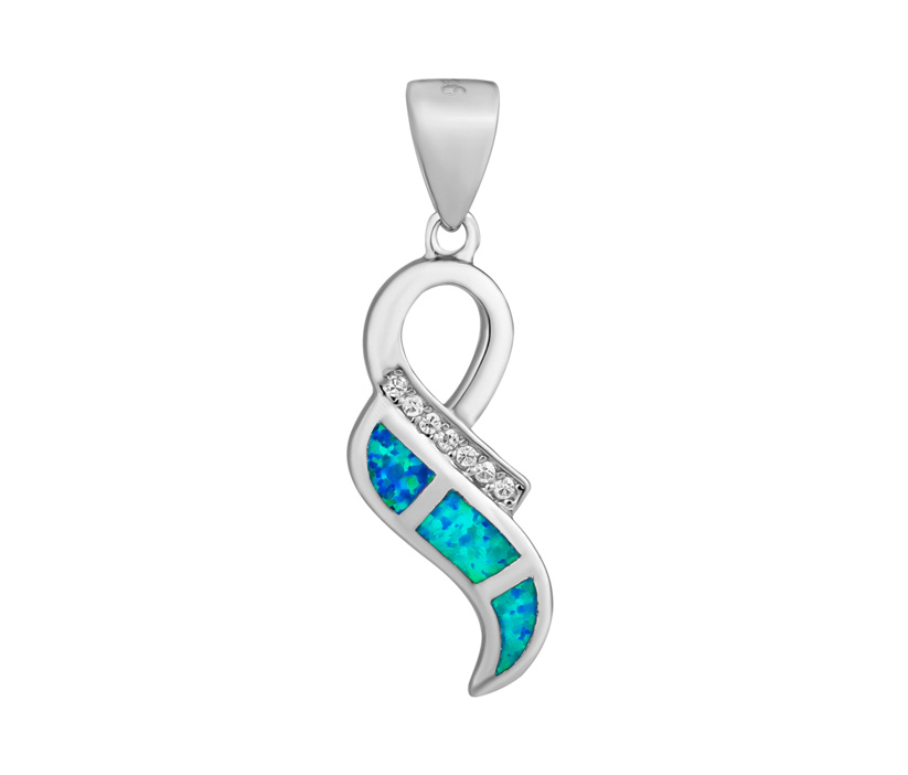 Damenanhänger in Schleifenform mit blauem synthetischem Opal und Brilliance Zirconia. Der Anhänger ist aus rhodiniertem Silber (925/1000) gefertigt und glänzt wunderschön. Die synthetischen Opale erzeugen mit ihren Reflexionen in Grün- und Blautönen ein bezauberndes Farbenspiel. Klare Zirkonia-Steine verleihen dem Schmuckstück zusätzlichen Glanz. Der Anhänger lässt sich ideal mit den passenden Ohrringen kombinieren.